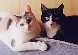 ショコラケーキにお好みのソースがけデザート登場!メンバーの一人が「ワタシ、きのう誕生日だったの」というわけで、 白バラを模ったアイスクリームも登場して、例のごとく、ムクムクっとフォトグラファ意識が・・・ 「あー、食べるのちょっと待ってね、そのデジカメ貸してー」と撮影する私。 2001/8/6 『晒柿』No.4で紹介した、グラフ-Tの富安さんからのお誘いで、細井豊(キーボード&アコーディオン) を交えてのセッションライブに行ってきた。 細井豊さんは加藤登紀子、エポ、竹内まりあ等のサポート、そしてセンチメンタルシティロマンスのメンバーとか。昨日、四日市で加藤登紀子さんのライブがあり、 その流れでのジョイント。 ライブが始まってみると富安さんが歌いだし、「そういえばミュージシャンだった!」と思い出した。長年のコンビの井上さんのギターも冴え、富安さんとのハモリもすごくいい。 そこへ細井豊さんが加わり、「A列車で行こう」をご機嫌な顔とタッチで弾き、三人の息の合ったアカペラに、もう楽しくて楽しくて、 体中からアルファ波が飛び散った。 JAZZあり、ビートルズナンバー、ポップ・ロックンロールと、ファンキーなものからバラードまでレパートリーの広さ、 ジョークを交えたトークに、ハッピーな時間を過ごした。また、ミュージシャンとしてのレベルの高さも感じた。アンコール曲は、最近車の中で口ずさむ、 大好きな『星影の小径』だった!!! 2001/8/10 ![]() 息子の部屋のマットレスを立てかけると、すぐに昇りたがるロンとマイシャ。 「二人とも なに話してんのよー」 「ナーイショ」 「そんなこと言わないで お母さんも混ぜてよ」 「ダメヨー」 「お母さんってさぁ、すぐ捕まえて“毛繕いしよー”なんてガムテープでゴシゴシやるんだもん、いやだよねー」 なんて言ってたりして。 久々にアップした猫たちの写真。 2001/8/19