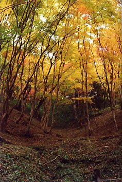 傾斜地のきゃしゃな樹木は、風に吹かれてしなやかに揺れる