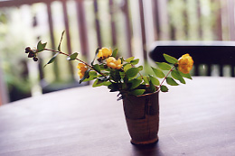 ![]() [No.538] 2004/6/30(水) 本棚に置いた扇風機の横にマイシャ、仏壇の前の年輪の椅子はロン、ベッドの上にはチビ、相変わらずパソコンの前は・・・蒸し暑い季節、それぞれの居場所です。 先日、『野むら』さんへ行ったら、「○○(友人)さんが来てくれたのよ」と。ここ数日『トスク』通いをしてたら、そのたびに「昨日、○○さんと△△さんが来たんですぅ」・・・なんだか友人たちと追いかけっこしてるみたい。 その友人は、私と同じく機械音痴でして、「やっとインターネットを見ることが出来るようになった」と言ってました。 「今日は何してるんだろう?何処へ行ってきたのかな?」と、『晒柿』を見て一目瞭然。このコーナーは息子もチェックしてるようで、“自己申告”を兼ねた近況報告でもあります。 [No.537] 2004/6/29(火) またまた、きものの話。春先に多治見へ行った折、『灯屋』に立寄りました。ここも、『古美術・閑日堂』さんほどではないですが、ギャラリーに古着が並んでいて、目を皿のようにして見てきました。 そのときに買った帯(きれいで安かったの)を、手持ちのきもの・・・といっても、たった2枚ですが、合わせてみたら、しっくりこなかったので、失敗だったかなぁと思っていたのです。 それが、『閑日堂』さんの、カーキ色に幅の細い縞模様の合せのきものと、その帯が出会いを待っていたかのように、ぴったり合って嬉しいの何の。 その帯の存在をすっかりわすれていただけに、喜びも倍増です。 自分と“もの”だけでなく、“もの”同士の出会い・・というのもあるんですね。 [No.536] 2004/6/28(月) 昨日は、“そばの横好き”さんご夫妻に、伊賀へ連れて行ってもらいました。『そば・松尾』で美味しい蕎麦と天婦羅をいただきながら、例の如く CONTAX で写真をパチパチ。 そのあと、伊賀焼陶器祭の会場にもなる長谷園に立寄り、この日一番の目的地『古美術・閑日堂』へ。 古着がたくさんあるというので楽しみにしていましたが、期待違わず、きものはもちろん帯や小物を、血眼でチェック!(笑)なんと、5時間近くも足止めさせてしまいました。 おかげで、男物の夏きもの(黒っぽい麻縮)、カーキ色に幅の細い縞模様の合わせ、ずーッと探していた生成色の帯閉めを、清水の舞台から飛び降りて買ってきました。 福森さんの平たい土鍋も受取って、満ち足りた気分で帰ってきました。そばの横好きさんご夫妻に感謝! 限りなく京都に近いと思っていた伊賀も、豊田から湾岸道路を通っていくと案外近いことも新しい発見です。 ![]() これは、あきらめた [No.535] 2004/6/27(日) 昨夜の蒸し暑かったこと。熱帯夜? 今シーズン初めて、扇風機を回して寝ました。 今日は、“そばの横好き”さんご夫妻に、土楽窯の土鍋を受け取りがてらの“伊賀ツアー”に連れて行ってもらいます。 美味しい蕎麦はもちろん、伊賀焼の里「長谷園」見学、土鍋を受取る「閑日堂」で、裏庭のガーデンテラス鑑賞と古着の試着(きものです!)といった、とっても濃い内容のルートに、もう遠足気分でウキウキ ソワソワ。 先日の古民家訪問もそうですが、ネットが取り持つ縁で、こうして同伴させていただき、幸せもんのshare-gaki です。 [No.534] 2004/6/26(土) 弟の養子先S家の一周忌に出席しました。S家は親戚も家族も多いので、とても賑やかな法事でした。 来月は母の初盆です。年は充分過ぎるほど重ねたわりに法事には疎い私なので、S家の法事が参考になります。 さて、ちょっと早めの更新は、何度行っても面白い発見のある、“とっておきのShop” 『un neuf』 の紹介です。どうぞご覧下さい。そして、ぜひお出掛けください。 [No.533] 2004/6/25(金) 梅雨がぶり返して、蒸し暑い日が続きます。今日は、仕事がらみで常滑へ行ってきました。 半年ぶりの常滑は、新空港への道路工事が進んでいて、ずいぶんと様変わりしていました。 『ぎゃらりー風』で、ちょっと遅いランチをいただきましたが、欲張って“黒ごまぜんざい”も注文。料理センスのよさと美味しさに、同僚たちも喜んでいました。 デザイナーの酒井真知子さんから届いたDMを、“企画展のおしらせ”にアップしました。先月、share-gaki が撮影した一枚です。短い会期ですが、ぜひお立寄りください。 [No.532] 2004/6/24(木) 今日は、現場やら打合せで一日中車で移動し、まだ夏前だというのに、早くもバテています。これが遊びならば、平気なのにね。(笑) 「スタミナをつけるには鰻が一番!」と思ったけど、残業の後にクリーニングに寄り、トムキャットにも寄ったら、買物するエネルギーが足りなくなってしまい、そのまま帰宅してバタンキュー。でも少し寝たら楽になりました。 さぁ、美味しいお茶でも淹れて、ひと踏ん張りしましょか。今夜のBGMは、渡辺貞夫さんの『VIAJANDO』。貞夫さんのオフィシャル・ウェブサイトのトップにもなっている、ジャケットの写真が大好きです。 [No.531] 2004/6/22(火) 裂織作家さんに誘われて、今日から『gallery 48』で開催の、GAGA展オープニ