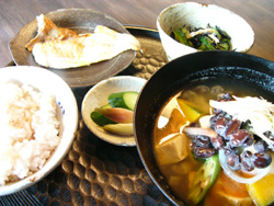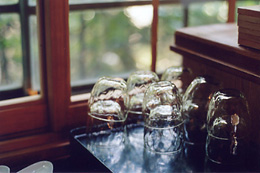 ![]() [No.609] 2004/8/30(月) “大型で強い台風16号”が、今もなお爪痕を残しながら移動しています。この辺りでは、フェーン現象で蒸し暑いものの、雨は上がり、風もさして無く、胸を撫で下ろしていますが、あなたの所は大丈夫でしょうか。 これから・・・という方もいらっしゃるかもしれませんね。どうぞ、ご用心を。 さてさて、先日もお知らせしましたが、share-gaki のドメインを取得し、一週間ほど前からコンテンツの移動をしています。バックナンバーをご覧になれないのもあるかと思いますが、もうしばらくお待ちを。 [No.608] 2004/8/29(日) 先日、珪藻土塗りをお手伝いした仲間の家の、オープンハウスに行ってきました。それも着物で! 実は、“きもの着付教室”を主宰し、日本舞踊の師匠もされていて、今日は稽古場のこけら落しでもありました。 今日着て行った縮みの麻着物と帯は、先生お見立のリサイクルもので、久々の着付けに帯が上手く結べず、悪戦苦闘。小一時間も掛ってなんとか着付け、出かけました。 お宅は、踊りと着付けの生徒さんや工事に携った方などで、とっても賑っていました。10月の発表会に向けて、しばらくはお忙しいそうなので、Interior Watchingへの登場は、11月くらいになりそうです。 リンクに、奈良で流木創作活動をされている、よつば工房さんを追加しました。どうぞご覧下さい。 [No.607] 2004/8/29(日) 昨日は、ほんとにハードスケジュールの一日。午前の打合せが思ったよりも時間が掛ったので、豊川インターから豊田東インターを飛ばして(40分短縮)、足助の『蔵の中ギャラリー』で企画展の撮影。 そこを4時に出て、岡崎のオープンハウス見学をと思ったのに、葉書をよーく見たら、なんと3時で終了・・・。ならばと予定変更して久々に、安城の『野むら』さんでティタイム。 そして、夜は白竹さんのパーティに行ってきました。 パーティでは、ほとんど初めてお会いする方ばかりでしたが、とっても楽しい時間をすごさせてもらいました。 今週は、沖縄旅行の計画と夜遊びに時間を費やしましたので、更新の方は一昨晩と今朝とでエイヤッ!と作った「猫額庭」です。さらりとご覧下さい。 ![]() 夏の朝食(D) [No.606] 2004/8/28(土) 今日の予定は『蔵の中ギャラリー』の企画展撮影と、できれば山共建設さんから案内をいただいた「土壁の家」のオープンハウス(岡崎)、その後これもお誘いいただいた白竹さんのパーティーへと盛りだくさんで、 もうひとつ見たかったオープンハウスもあったけど、午前中に仕事が入ったので時間が取れず、午後は過密スケジュールです。 突如ライブが入った昨夜のパラディソは、京都で野外ライブへ向ったものの台風で中止になってしまった、和太鼓軍団ドンガラが、TOMIYASUさんとコンタクトを取って急遽実現したんだそうです。 急なライブだったにも関らず、双方の電話作戦が効をなして、大勢の人が会場を埋め、素晴らしい演奏に会場が沸きました。今日のスケジュールのために早めに帰らざるを得なかった share-gaki としては、最後まで聴けなかったのが、ほんとにに残念。 [No.605] 2004/8/27(金) 明日の午前は、休日出勤のため、その分早退して、先日した検査の結果を聞いてきました。 ひとつは骨密度で、昨年春から食生活を変えたので、カルシウムが足りているかどうかが心配でしたが、「歳相応の数値を満たしている」そうなので、ひと安心。 健診で少ないと出た白血球の方は、3000 だったのが 4000 あり、こちらも数値の変動は心配の範囲ではないそうです。関心のあった顆粒球とリンパ球の割合も、私の場合は以外や“リンパ球人間”でした。 ところで、今年の健診センターの診断結果は、なぜか「再検査要」の人を大量に作り出しましたが、癌への恐怖を与えただけで、何の心配も無い結果ばかり。今後の健診の必要性を考えさせられました。 [No.604] 2004/8/26(木) いただきものに、こーんなギフトカードが付いてたら、贈り主のセンスと温かさに、飛び上るほど嬉しくなってしまいそう。 このオリジナルギフトカードは、『アンヌフ』管理人さんの手作りで、布絵の一点もの。 当初、ギフトに付けていたものを、最近は販売もされ、とっても素適だから、一枚いただいたのをみなさんにもお披露目です。 こんな素適なカード付きなら、贈物選びも楽しくなりそうですね。 さて、『蔵の中ギャラリー』さんから届いた、企画展のDMをアップしました。 オリンピック観戦の合間に、どうぞご覧下さい。 ![]() 貰うも 贈るも 嬉しいカード [No.603] 2004/8/25(水) 会社のパソコンが、やっと復帰。 windowsXP に office2003 をインストール・・・までは良かったのですが、カラープリンターのドライバーが無く、エクセルも計算に手間が掛るので、office2000 に戻そうかと検討中。 新しければ良いってもんじゃないようです。 自宅でのパソコンタイムは、コンテンツ作りを棚に上げて、オリンピックもそっちのけで、昨日から沖縄モード。 今夜は、“どこを巡るか”よりも、“