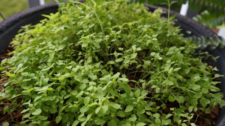 タイムの鉢へのこぼれ種は、ハコベだった。