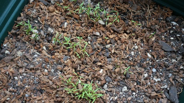 サラダに使いたくて、満月の日に種蒔きしたミニ人参の双葉が出だした。