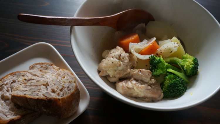 右手でピラーを使って、ジャガイモの皮を剥いたんだよ(^^♪