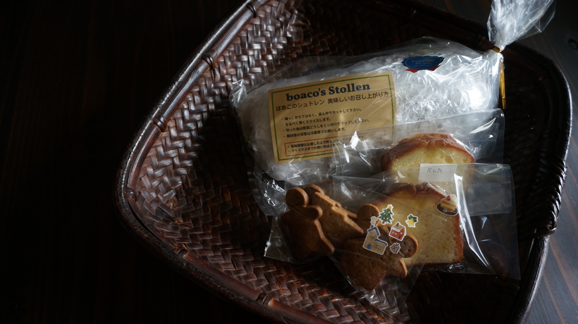 これまでは、ビスコッティなどの焼き菓子もたくさんだったけど、歳をとると、乾いた粉ものでむせたりするので、シュトーレンだけでいいよ伝えてあったけど、レモンケーキとクリスマスのビスケットは、次男の知り合いの店主さんからのオマケだそうな。