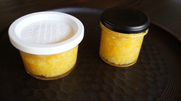 今回は、小さなジャム瓶には入りきらず、すぐに使う分はグラスに入れて保存。