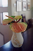 ![]() 完成現場の撮影で使った アンスリュウムを 事務所の花瓶にさした。 かなり大きいこともあって すっごい存在感! |
