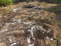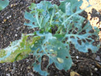 2004/11/3(水) 晴れ 祝日の今日、園芸屋さんで腐葉土を買い、ついでに玉ねぎの予約をしてから畑へ。 途中、石巻小学校前の柿畑で今日も収穫作業をしていたので、5.6個入り百円の柿と息子に送る柿を、どっさり買い込んだ。 親御さんから引き継いで、ご主人の方は休日だけ関っているそうで、収穫に手が回らず、きれいなのが少ないとか。 頭が黒いくらいの方が、食べ時だと思っている私からしたら嬉しい情報で、毎年ここで買うことにしました。 今日の作業は、サツマイモを掘り起した後の土に腐葉土と石灰を混ぜ込んで、11月末に植える予定の玉ねぎの畝を作っておきました。 芽の出た菜っ葉類は、虫に食われて全滅。ラディッシュも親指の頭もないくらいのが少しだけで、次回また新たに種蒔をすることにしました。 苗から植えたブロッコリーの葉も虫に食われていますが、こちらは幼虫を丁寧に取り除き、追肥を施しました。 細ネギだけは虫がつかないのか、細々と・・・食べられるくらいに育つんだろうかと、心配でもあります。 藤棚の上で、カラスが見張り番。耕すとちゃんとやってくる智恵ものだから、KURIさんからいただいたツタンカーメンの豆は、ポットに植えて苗をつくってから植えた方がよさそう。