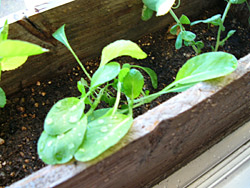 2004/12/23(木) 薄曇り、季節風強し やっとかめに畑へ行きました。山の北側斜面の畑ゆえに、日当りがほとんどなく、おまけに季節風が強くて寒々しい光景に、なんだか畑の野菜たちが不憫でなりませんでした。 この厳しい条件の中で、唯一スティックブロッコリーだけが、毛虫に葉っぱを散々食われはしたものの、やっと害虫から開放されて、らしくなってきました。よく頑張ったね! 他の畑のブロッコリーは、化成肥料が施させていることもあって、とっくに食べ頃ですが、ぐっと我慢して有機肥料のみの晒柿畑。 10月に蒔いた人参と菜花が、申しわけ程度に、2.3本顔を出した。接写なので大きそうに見せるけど、実際は3センチくらいです。玉ねぎも、ただただ立っているのが精一杯って感じです。 無花果の葉は、ほとんど落ちたけど、早くも新芽が春の準備を始めていました。来年は食べられる実をつけてくれますように。 ![]()
