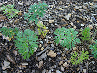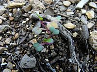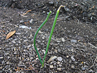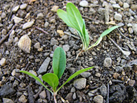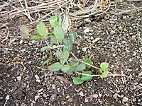 さてさて、いちばん気がかりツタンカーメンの苗は、たったの20センチくらいで、コンテナで育てているのと比べて、環境でこんなにも成長が違うものかとびっくりしました。 ここは風当りが強いのか、みんな根元から折れるように寝ていた。霜も降り始めたので、この冬が越せるかどうか心配です。 右下はツタンカーメンと一緒に移植した菜花で、コンテナのは10センチほどになっているのに、畑のは双葉のまんま。 どうやら、この畑では秋蒔き冬作は向かないようです。2.3月に、ポットで苗を育てておいて、春に植えるのがいいのかもしれません。