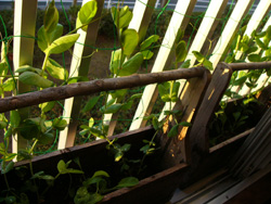久々に、ツタンカーメンの豆を撮りました。 この場所は庇があるので、霜の心配もなく日当りも十二分なので、ぐんぐん伸びて早くも手摺の真中辺り。 菜花も、美味しそうに育っている。 畑に植えたのは、この半分くらいで、お天道さまの恩恵が乏しい中、寒さに耐えて頑張っています。今度の休みは会いに行こう!