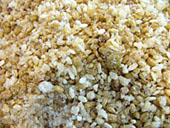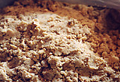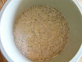 ![]() さて、潰した大豆と塩切りした麹と混ぜ合わせますが、大きな容器を用意してなかったので、ゴミ用の大きなビニール袋に入れて、混ぜ合わせました。 この時、大豆の煮汁を足して適当な固さにするのですが、ひょっとしたら私は固めだったかもしれません。 ![]() よく混ぜ合わせた味噌を団子にし、瓶の中へ空気を押し出すように詰め込んでいきます。詰め終わったら表面を平らにしてラップで覆い、 瓶の立ち上りと縁をアルコールで拭き、蓋をして出来上り。(日本酒好きから待った!が掛りそうな、飲みかけの日本酒を使いました) ![]() この後の管理は、一ヶ月に一度天地返しをするとのこと。また、この味噌を一年ものにする場合は、塩を180g 足すそうです。 さて、仕上りは? 楽しみであり、恐くもあり・・・ |