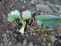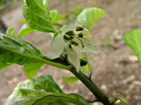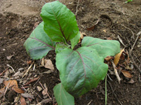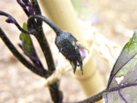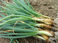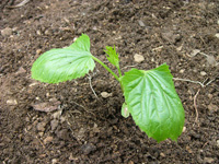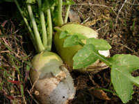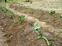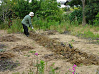 2005/5/1(日) 曇り後雨 開園して一年、そして久しぶりの畑仕事の今日は、夏野菜の苗の植付けをしました。 まずは園芸店で、長茄子・キュウリ・トマト(桃太郎とホーム桃太郎)・ゴーヤを2種類にシシトウを買い、石巻の畑へ。 イチジクが、なんと2つの実を付けていました。 11月に植えた玉ねぎが、日照不足のため育たず、半年にもなるというのに一番大きかったのが、小粒ラッキョウくらいだった。