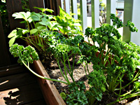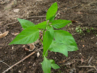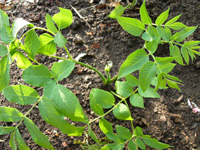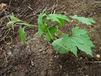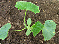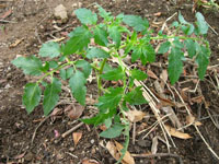2005/5/4(水) 晴れ 久しぶりに、畑で長老とお会いした。挨拶を交し、植えたての苗の話をしていたら、長老の手が雑草を抜き始めたので 「今年は、雑草とともに育てる実験をします!」と、あわてて宣言。 茄子やトマトに支柱を立てていたら。「紐の結び方は8の字に」と、長老のありがたいアドバイス。 棒の立て方も、斜めでなくっちゃね。次回やり直しまーす。 早くもゴーヤに、羽化したアブラムシがびっしり。トマトの方は、苗についたアブラムシの幼虫を、孵ったばかりのようなバッタが食していたので、 写真を撮ったら、せっかくのバッタが、トマトから逃げてしまった。あ〜ぁ。 木酢液の薄めたのを散布する話も出たけれど、面倒でも手でつぶすのが一番らしい。 ウド1株とズッキーニ(ツルなしかぼちゃなんですって)を3株追加。バルコニーのコンテナにも、パセリ、青ジソ、アシタバ(三つ葉みたいなの)、ペパーミント2種。 ちゃんっと育ったら嬉しいな。 次回は、オクラの畝に、堆肥を施す予定。