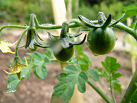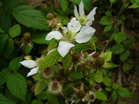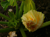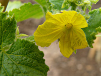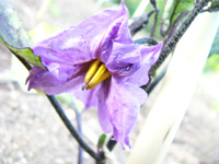 2005/5/29(火) 晴れ サツマイモの苗の植付けが、ちょっと深かったのか、枯れてしまったのがいくつかあったので、補充した。 オクラの苗も植えたかったのだけど、買うのが遅かったようで、立寄った園芸店2軒とも品切れだった。ダメモトで追加注文したが、 入荷しなかったら、種から育てるしかないかなぁ。 夏野菜たちが、花と実を付け始めた。左から時計回りに、キュウリ、ナス、ズッキーニ、シシトウ、トマト、ミニトマト。 トマトの苗の脇芽かきをした。一番成りのナスも、その後の育成のため摘果。ツルもののための支柱を立てをと思ったのに、 支柱が深く入らず、断念。竹の先を斜めに切り、木槌で打たなければ、固い土に喰い込んでいかないのかもしれない。 最盛期こそ過ぎたが、木イチゴがまだまだ収穫できる。今日は友人のために摘んで届けた。