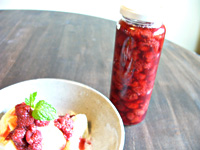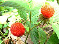今週も仕事が入ってしまったけれど、午後からの用事を済ませた後、畑へ直行。オクラ用に堆肥を施し、残りはサツマイモのために、畝を作っておいた。鍬で耕しす作業は、けっこう疲れるが、機械オンチつえに耕運機が使えない私。ぼちぼちやりますか。 今日の目的は、木イチゴ摘み。赤い実が「ここによ!」とばかりに、畑を取り囲んでいるので、蛇除けに棒で突っつきながら、夢中になって摘んでいたら、 「そんなのが食べられるんかい」と、地主さん。 「イチゴ酒にするんです」という私に、「あっちの土手にも、あったぞ」「春大根も抜いてきなッ」と。 紫外線もなんのそのと張りきった、2時間余りの農作業を終え、ルンルン気分で帰宅。 木イチゴの写真を撮った後、イチゴ酒も仕込み終え、充実の一日を味わった。 |