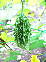 白ゴーヤが、三週間目にして10cm足らずの大きさになったものの、これ以上大きくならないような気がして摘み取り、