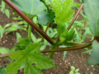 オクラに花芽が出した。去年は、虫に葉を食べられてしまっってがっかりしたが、今のところ虫の害もなく育っている。 ただ、ナスの方は見事に食べられてしまって、葉っぱがレース状態。