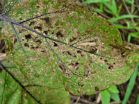 無花果の木に、こんな蝶(蛾かな)が、何匹かついていた。害虫かしら?