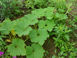 カボチャは、1本だけ勢い良く伸びていたが、やっぱり受粉をしていないので、花は咲けど実はつかず。