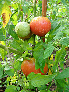 先週のように、せっかく赤く色づいたトマトが、カラスに突付かれてはと気になって、雨の中を偵察。