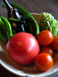 トマトは枝が伸びすぎて倒れているのが多く、鳥に食べられてしまわないうちにと、少し赤くなったのを摘んできた。