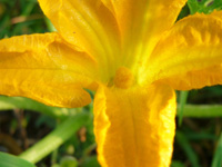 一株だけ残したズッキーニに、また花がひとつ。ダメモトで受粉らしきことをしてみたが、果して?