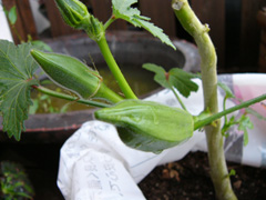 バルコニーのオクラが、勢いこそ無くなったものの、11月に入っても実を付けてくれる。