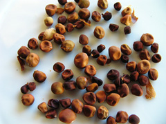 ツタンカーメンの豆をサヤから出してみたら、大きさにずい分バラ付きがあった。小さなのは、ちゃんと芽が出るんだろうか。