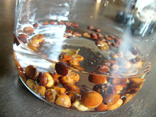 ツタンカーメンの豆を水に浸したが、なんだか栄養失調のような豆もあったりで、どれだけの豆が発芽するやら。